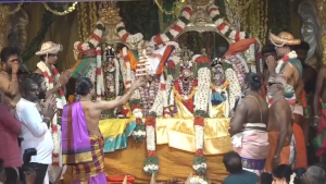 இதனையடுத்து சுவாமிகள் தினமும் பல்வேறு வாகனங்களில் எழுந்தருளி வீதியுலா வந்து பக்தர்களுக்கு அருள்பாலித்தார். இந்நிலையில் விழாவின் சிறப்பு பெற்ற நிகழ்ச்சிகளில் ஒன்றான திருக்கல்யாண வைபவம் கோவில் மண்டபத்தில் வெகு விமர்சையாக நடைபெற்றது .