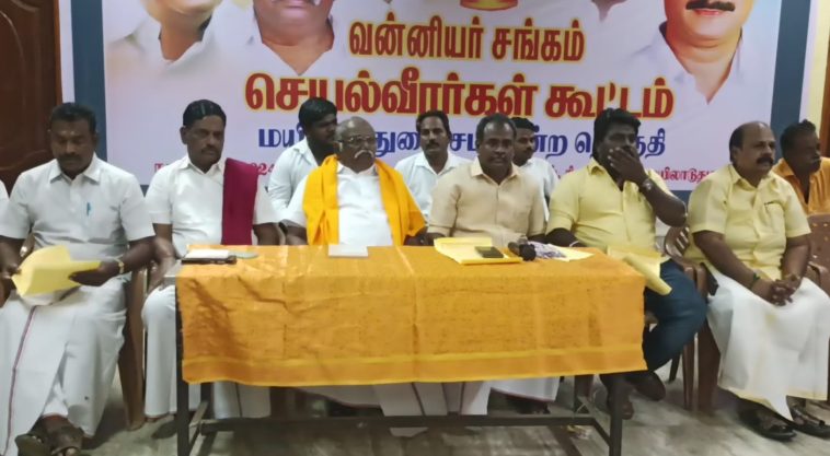 மயிலாடுதுறை மாவட்டம் மயிலாடுதுறையில் வன்னியர் சங்கம் செயல்வீரர்கள் கூட்டம் தனியார் திருமண மண்டபத்தில் வன்னியர் சங்க மாவட்ட தலைவர் பாக்கம் சக்திவேல் தலைமையில் நடைபெற்றது. இதில் சிறப்பு அழைப்பாளராக வன்னியர் சங்க மாநிலத் தலைவர் பு.தா.அருள்மொழி கலந்துகொண்டு சிறப்புரை ஆற்றினார். இந்தக் கூட்டத்தில் வன்னியர்களின் பிரச்சனை குறித்து பகுதி வாரியாக பொது கூட்டங்கள் நடத்துவது குறித்தும், வன்னியர்களுக்குரிய 10.5 சதவீத இட ஒதுக்கீட்டை பெறுவதற்கு தீவிரமான போராட்டங்கள் நடத்துவது குறித்தும், திருவண்ணாமலையில் நடைபெற உள்ள உழவர் பேரியக்க மாநாட்டிற்கு விவசாயிகளையும் வன்னிய மக்களையும் திரட்டுவது குறித்தும் ஆலோசிக்கப்பட்டது…