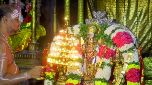 தொடர்ந்து மகாதீபாரதனை,சத்திரங்கள் கொண்டு சோடச உபச்சாரங்கள், கும்ப தீபம், பஞ்சமுக தீபாரதனை, கற்பூர ஆர்த்தி ஆகியவை காட்டப்பட்டன. உட்பிரகாரம் வந்து வெள்ளித்தேரில் எழுந்தருளினர்.