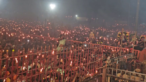 இதில் கலந்து கொண்ட பல்லாயிரக்கணக்கான பக்தர்கள் கையில் தீபம் எந்தி ஓம் சக்தி அங்காளம்மா என வழிபட்டனர்.