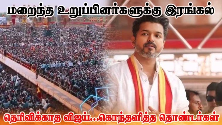 பணமோ அல்லது எங்களை நேரில் சந்தித்து இரங்கல் தெரிவிக்க வேண்டும் என்றும் கேட்கவில்லை ஆறுதலாக ஒரு வார்த்தை கூறினால் போதுமே என குற்றம் சாட்டினர். மேலும் ஒரு சிலர் சிகிச்சை பலனின்றி இறந்திருக்கின்றனர். கட்சிக்காக நாங்கள் உழைத்ததற்கு இதுதான் எங்கலுக்கு கிடைத்த பலனா என்று ஆதங்கத்துடன் கூடியிருக்கின்றனர் . மேலும் இந்த மாநாடு எதிர்பார்த்ததை விட successfull….லாக முடிந்ததற்கு பலர் உழைத்து இருகின்றனர், மாநாடு முடிந்தவுடன் அவர்களுக்கு நன்றி கூட சொல்ல வில்லை விஜய். உழைத்தற்கு உதியம் மட்டும் போதுமா தட்டிகொடுக்க கை வேண்டாமா என்று உறுப்பினர்கள் ஆதாங்கதை கொட்டி இருகின்றனர்.