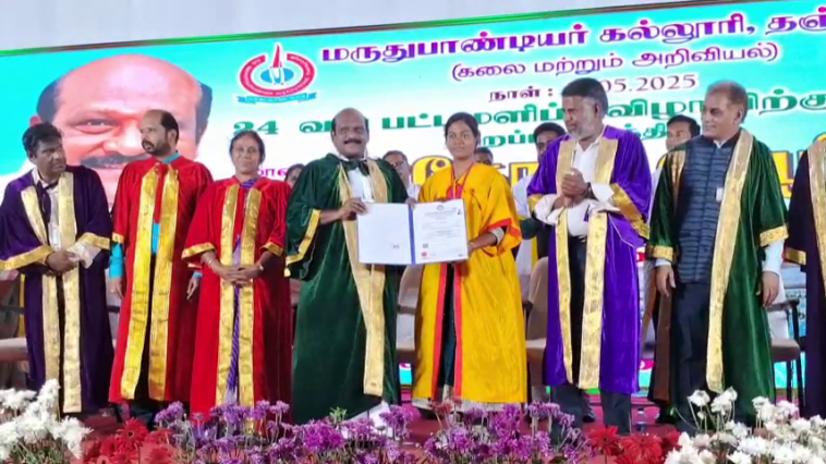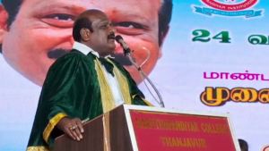 தஞ்சாவூர் மருதுபாண்டியர் கல்லூரியில் நடைபெற்ற பட்டமளிப்பு விழாவில் கலந்து கொண்டு 300 க்கும் மேற்படிட மாணவ , மாணவிகளுக்கு பட்டங்களை வழங்கி பாராட்டி பேசிய உயர்கல்வி துறை அமைச்சர் கோவி.செழியன்…