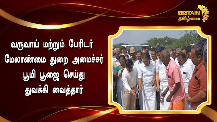 வருவாய் மற்றும் பேரிடர் மேலாண்மை துறை அமைச்சர் பூமி பூஜை செய்து துவக்கி வைத்தார்