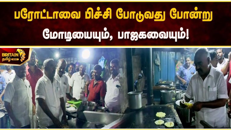 திண்டிவனம் அடுத்த கூட்டரிபட்டில உள்ள உணவகத்தில் பரோட்டா தயாரித்து கொடுத்து அமைச்சர் செஞ்சி. மஸ்தான் பொது மக்களிடம் வாக்கு சேகரித்தார்.