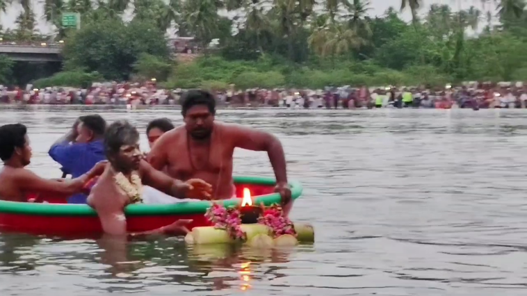 நாமக்கல் மாவட்டம் பரமத்திவேலூரில் ஆடிப்பெருக்கு விழாவையொட்டி காவிரித்தாயை வணங்கும் வகையில் ஆற்றில் மோட்ச தீபம் விடப்பது வழக்கம். அதன்படி, இந்த ஆண்டு ஆடி 18 ஐ முன்னிட்டு மோட்ச தீபம் விடும் நிகழ்ச்சி நடைபெற்றது.