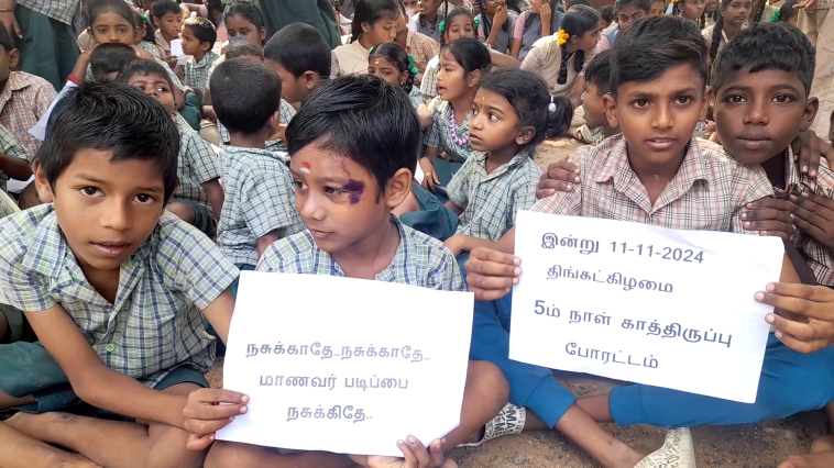 தொடர்ந்து 5வது நாளாக தங்களது குழந்தைகளை பள்ளிக்கு அனுப்பாமல் பெற்றோர்கள் நடத்தி வரும் இந்த போராட்டம் அப்பகுதியில் பரபரப்பை ஏற்படுத்தியுள்ளது
