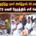 சாலைகள் குறித்து புகார் அளித்தால் 48 மணி நேரத்தில் (அ) 72 மணி நேரத்தில் சரி செய்யப்படும்