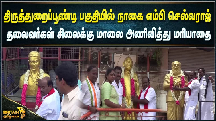 நடந்து முடிந்த நாடாளுமன்றத் தேர்தலில் நாகை தொகுதியில் திமுக கூட்டணியில் இந்திய கம்யூனிஸ்ட் கட்சியின் சார்பில் போட்டியிட்ட வை செல்வராஜ் 2 லட்சம் வாக்குகள் வித்தியாசத்தில் வெற்றி பெற்றார் இந்த நிலையில் இன்று திருவாரூர் மாவட்டம் திருத்துறைப்பூண்டி புதிய பேருந்து நிலையம் அருகே பி எஸ் ஆர் நினைவு மண்டபத்தில் பி. சீனிவாசராவ் அவர்களின் திருவுருவப்படத்திற்கு மாலை அணிவித்து மரியாதை செய்தார்