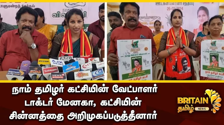 நாம் தமிழர் கட்சியின் வேட்பாளர் டாக்டர் மேனகா, கட்சியின் சின்னத்தை அறிமுகப்படுத்தீனார்