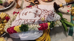 அப்போது கருடன் வரையப்பட்ட கொடி திருக்கோவில் சுற்றி வந்து கோவில் முன் உள்ள கொடிக்கம்பத்தில் கோவிந்தா கோவிந்தா கோசத்துடன் திருக் கொடி ஏற்றப்பட்டது பின் மஹா தீபம் காண்பிக்கப்பட்டது.