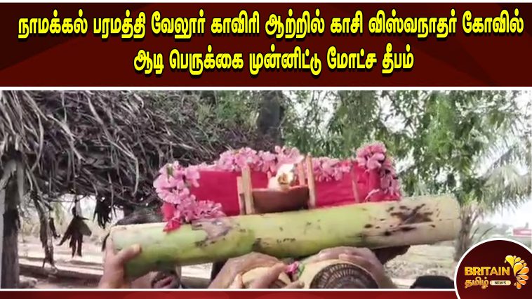 நாமக்கல் மாவட்டம் பரமத்தி வேலூர் காசி விஸ்வநாதர் ஆலயத்தின் சார்பாக காவேரி ஆற்றில் ஆடிப்பெருக்கு ஆடி 18 முன்னிட்டு காவிரி ஆற்றில் மோட்ச தீபம் விடப்பட்டது