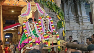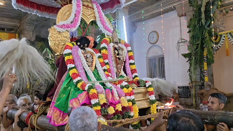 ஸ்ரீமடத்து வாசலில் வானமாமலை மதுரகவி ராமானுஜ ஜீயா் ஸ்வாமிகளுக்கு மாியாதை செய்யப்பட்டது. தொடா்ந்து ஜீயா் ஸ்வாமிகள் மற்றும் பிரபந்த கோஷ்டியாா்உடன் பக்தா்கள் ஊா்வலமாக தெப்பக்குளத்திற்கு வந்தனா்.