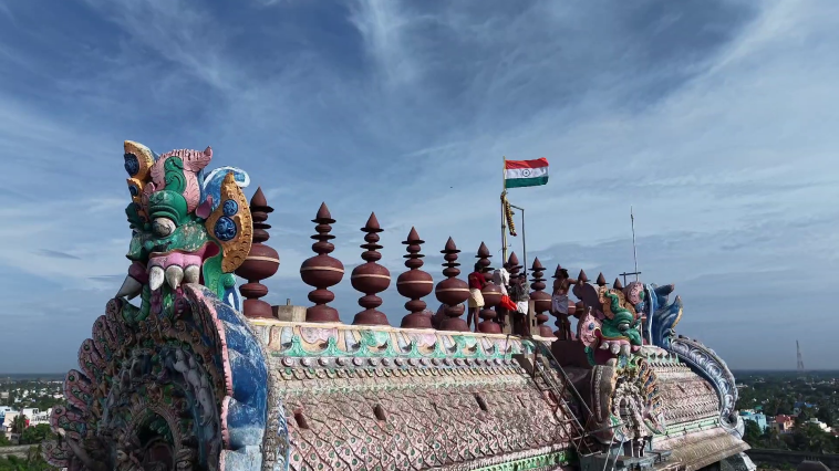 கோவில் கருவறையில் இருந்து எடுத்து செல்லப்படும் தேசியக்கொடி நார்மல் காட்சி மற்றும் கழுகு பார்வை காட்சிகள் அனுப்பப்பட்டுள்ளது:-……