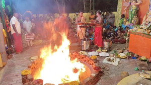 தொடர்ந்து பக்தர்கள் அளித்த 100 கிலோ மிளகாயை யாகத்தில் இட்டு வேத விற்பனர்கள் மந்திரம் ஓத நிகும்பலா யாகம் நடைபெற்றது.