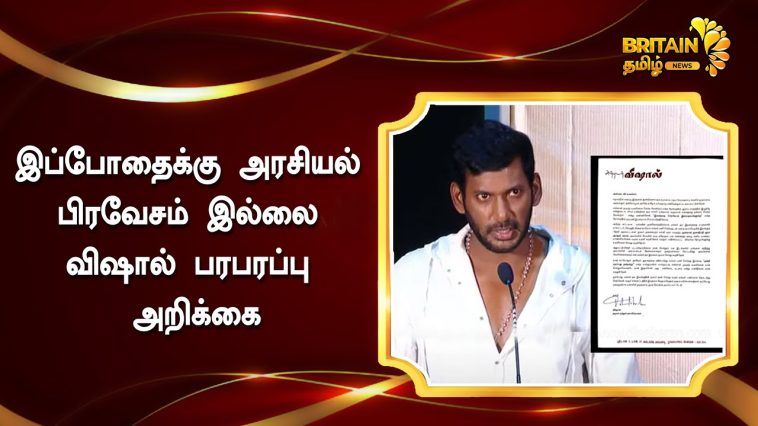அரசியலுக்கு வருவேன் என்பதை இந்த அறிக்கையில் சூசகமாகத் தெரிவித்துள்ள விஷால் இப்போது அதற்கான களப்பணிகளை மேற்கொள்ள இருக்கிறார் என்பதுதான் இந்த அறிக்கையின் மூலம் புரிந்து கொள்ள முடிகிறது. மேலும், விஜயைப் போலவே வருகிற 2026-ம் ஆண்டு சட்டமன்றத் தேர்தலில் போட்டியிடப் போகிறார் விஷால் எனவும் சொல்லப்படுகிறது.