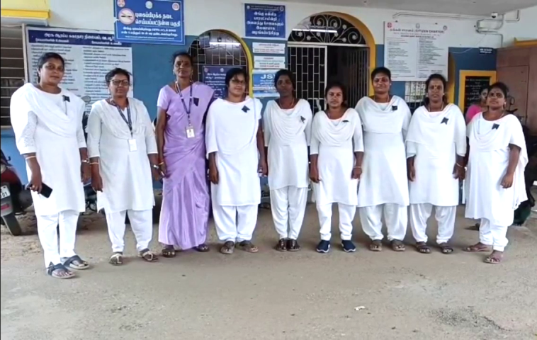 மகப்பேறு மற்றும் சிசு மரணங்கள் உயர்வதை தடுக்க முத்துலட்சுமி ரெட்டி மகப்பேறு நிதி உதவி திட்டத்தை சமூக நலத்துறைக்கு மாற்றிக் கொடுக்க வேண்டும், Online பதிவு பணிக்கு வேறு நபர்களை நியமிக்க வேண்டும் உள்ளிட்ட கோரிக்கைகளை வலியுறுத்தி தமிழ்நாடு அரசு அனைத்து சுகாதார செவிலியர்கள் சங்கத்தினர் தமிழக முழுவதும் ஐந்து அம்ச கோரிக்கைகளை வலியுறுத்தி,