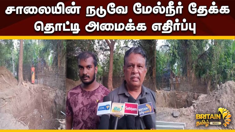 அந்தப் பணியானது சாலையின் நடுவிலும் அப்துல் அஜீஸ் என்பவரின் பட்டா இடத்திலும் தொட்டி கட்டுவதாக எதிர்ப்பு எழுந்துள்ளது இது குறித்து உரிய அதிகாரிகள் ஆய்வு செய்து சாலையின் நடுவே இரு வீட்டிற்கு வாசல் செல்வதற்கு வழி விட்டும் அதே பகுதியில் அருகில் உள்ள அரசுக்கு சொந்தமான இடத்தில் குடிநீர் தேக்க தொட்டியை அமைத்து நடவடிக்கை எடுக்க வேண்டும் என கோரிக்கை முன்வைத்துள்ளார்.