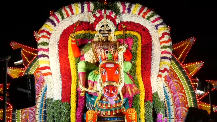 தொடர்ந்து வண்ண மலர்கள் கொண்ட அலங்கரிக்கப்பட்ட உற்சவர் ஸ்ரீ முத்தாலம்மன் ஸ்ரீ மீனாட்சி அம்மன் அலங்காரத்தில் காட்சியளித்தார். மேலும் மகா தீபாராதனை, நட்சத்திர தீபம், கும்ப தீபம், சத்திரங்கள் கொண்டு சோடச உபசாரம், மற்றும் பஞ்சமுக தீபாரதனை கற்பூரத்தை காண்பிக்கப்பட்டது.