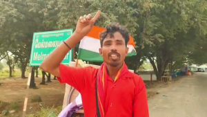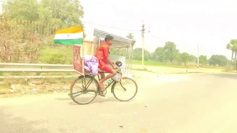 தேசிய கொடியை சைக்கிளில் கட்டிக்கொண்டு முதல் நாள் பெங்களூரில் இருந்து கிருஷ்ணகிரி வரை பயணம் மேற்கொண்டார். அவர் அங்கு ஓய்வு எடுத்துவிட்டு மறுநாள் கிருஷ்ணகிரியில் இருந்து திருவண்ணாமலை வரை பயணம் செய்து திருவண்ணாமலை அருணாச்சலர கோவிலில்ச சாமி தரிசனம் செய்துவிட்டு.
