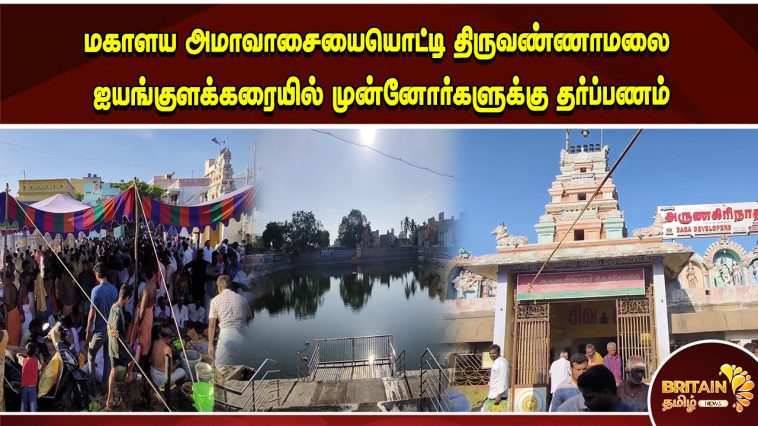 அதன்படி இன்று மகாளய அமாவாசை தினமான இன்று ஐயங்குளக்கரையில் திருவண்ணாமலை சேர்ந்த ஏராளமானவர்கள் ஒன்றுகூடி இன்று காலை முதல் மறைந்த முன்னோர்களுக்கு தர்ப்பணம் கொடுத்து முன்னோர்களை வழிபட்டனர்.