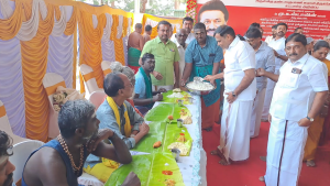 அன்னதானம் வணங்கும் நிகழ்வை, அறங்காவலர் குழு தலைவர் சுப்பிரமணி, இணை ஆணையர், மாரிமுத்து, உறுப்பினர்கள் பாலசுப்பிரமணியம், அன்னபூரணி, கொம்பன், தனசேகர் உள்ளிட்ட தலைமையிலான அறநிலை துறை அதிகாரிகள் உணவு வழங்கி துவக்கி வைத்தனர்.