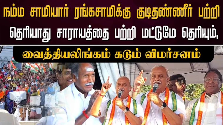 குடி தண்ணீர் கேட்டால் ரங்கசாமிக்கு தெரியாது, ஆனால் சாராயம் கேட்டால் உடனடியாக கொடுப்பார் நம்ம சாமியார் ரங்கசாமி இன்று கடுமையாக சாடினார்.