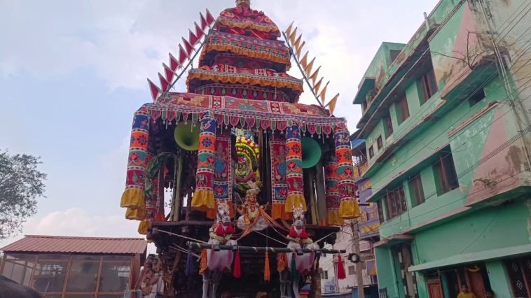 மாரியம்மன் கோயில் முன்பு சிறப்பு பூஜைகள் செய்யப்பட்ட பின்பு நான்கு ரத வீதிகளில் திருதேர் ஊர்வலம் நடைபெற்றது தேரோட்டத்தில் ஏராளமான பக்தர்கள் கலந்து கொண்டு தேரை வடம் பிடித்து இழுத்தனர்.