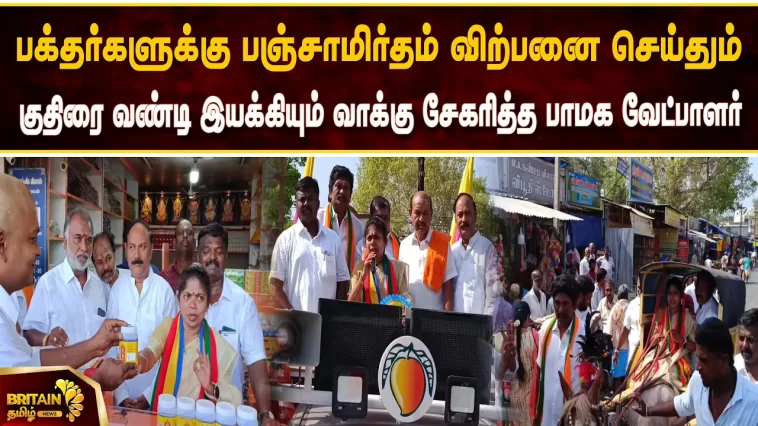 மக்களுக்கான திட்டங்களை செய்யாதவர்களை தூக்கி எறிந்து விட்டு எப்போதும் திமுக மற்றும் அதிமுகவிற்கு மாற்று பாமக பாஜக கூட்டணி தான் என்றும் தெரிவித்து பொதுமக்களிடம் வாக்குகளை சேகரித்து வருகிறார். திண்டுக்கல் தொகுதியை நாலு அமைச்சர்களை தூக்கி எரிந்து விட்டு மாம்பலம் சின்னத்தில் வாக்களிக்க வேண்டுமென கேட்டு கொண்டார். தொடர்ந்து அடிவாரம் பகுதிகளில் கடைகள் பிரச்சாரம் மேற்கொண்டு பஞ்சாமிர்த விற்பனை செய்யும் கடைகளில் பக்தர்களுக்கு பஞ்சாமிர்தம் விற்பனை செய்தும் குதிரை வண்டியை இயக்கியும் தீவிர வாக்கு சேகரிப்பில் ஈடுபட்டார்