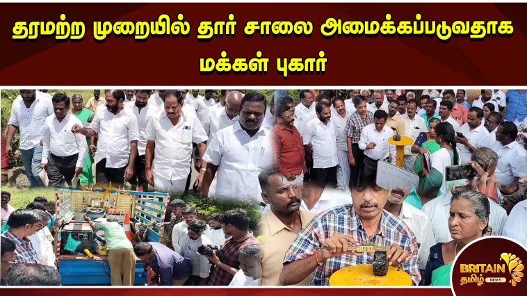 தரமற்ற முறையில் தார் சாலை அமைக்கப்படுவதாக மக்கள் புகார்