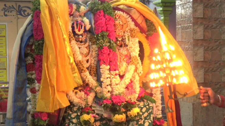 முன்னதாக மூலவர் விஷ்ணு துர்க்கை அம்மனுக்கு சிறப்பு அலங்காரம் நடைபெற்றது தொடர்ந்து உற்சவர் பெருமாள் மற்றும் தாயாரை மனக்கோளத்தில் சர்வ அலங்காரத்தில் எழுந்தருள செய்தனர்.