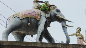 மேலும் கோபுரத்தில் உள்ள சிலைகளுக்கு இடையில் வளர்ந்து சிலைகள் சிதலமடைத்துள்ளது.