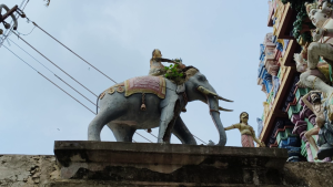 மேலும் கோபுரத்தில் உள்ள சிலைகளுக்கு இடையில் வளர்ந்து சிலைகள் சிதலமடைத்துள்ளது.