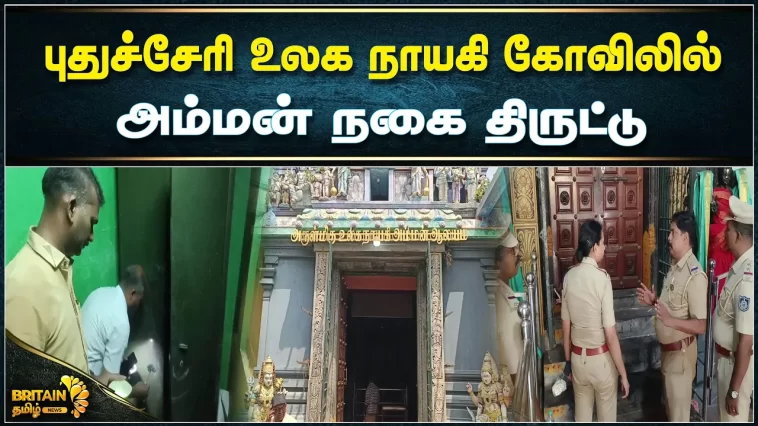 கும்பாபிஷேகம் முடிந்து சில நாட்களில் கோவிலில் இருந்த உண்டியலை உடைத்து பணம் திருடப்பட்டிருந்தது. இது பக்தர்களிடையே அதிர்ச்சியை ஏற்படுத்தியது. போலீசார் வழக்குப்பதிந்து விசாரித்து வருகின்றனர். இதுவரை கோவில் உண்டியலை உடைத்த திருடர்களை கண்டுபிடிக்க முடியவில்லை. இந்நிலையில் உருளையன்பேட்டை முல்லை நகரில் பிரசித்தி பெற்ற உலக நாயகி அம்மன் கோவிலில் அம்மன் நகை திருடப்பட்ட சம்பவம் பெரும் பரபரப்பை ஏற்படுத்தியுள்ளது.