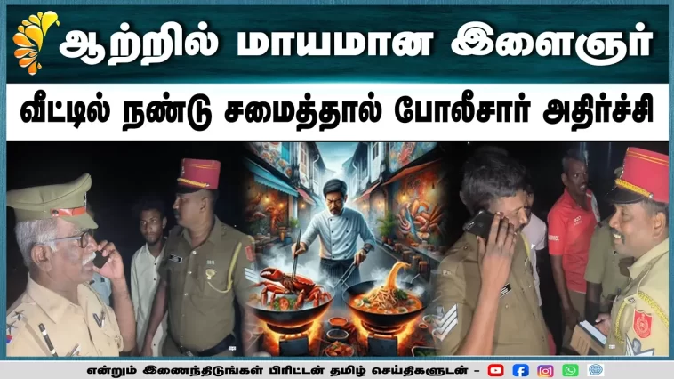 காரைக்கால் கடற்கரையில் ஆற்றில் மாயமான இளைஞர். மாயமான இளைஞரை தேடும் பணியில் போலீசார் ஈடுபட்டு வந்தபோது இளைஞர் வீட்டில் ஆற்றில் பிடித்த நண்டை சமையல் செய்ததால் போலீசார் அதிர்ச்சி.