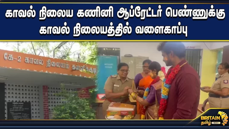 திருமங்கலம் அருகே கள்ளிக்குடி காவல் நிலையத்தில் கணினி ஆபரேட்டராக பணியாற்றும் பெண்ணுக்கு காவல் நிலையத்தில் ஆய்வாளர் சார்பு ஆய்வாளர் உள்ளிட்ட அனைவரும் ஒன்றாக சேர்ந்து வளைகாப்பு நடத்திய சம்பவம் நெகிழ்ச்சியை ஏற்படுத்தியது