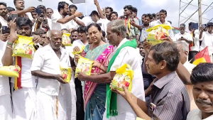 தொடர்ந்து தேமுதிக சார்பில் விவசாயிகளுக்கு உளுந்து பயிறு விதைகளை வழங்கினார். மாவட்டச் செயலாளர் ஜலபதி உள்ளிட்ட நிர்வாகிகள் உடன் இருந்தனர்.