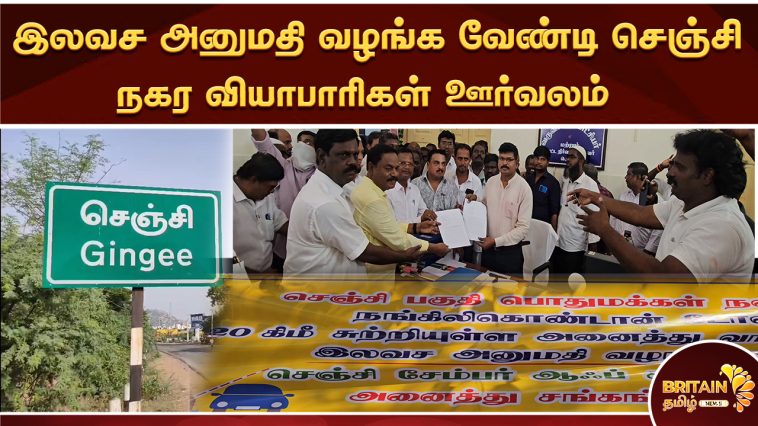 இலவச அனுமதி வழங்க வேண்டி செஞ்சி நகர வியாபாரிகள் ஊர்வலம்