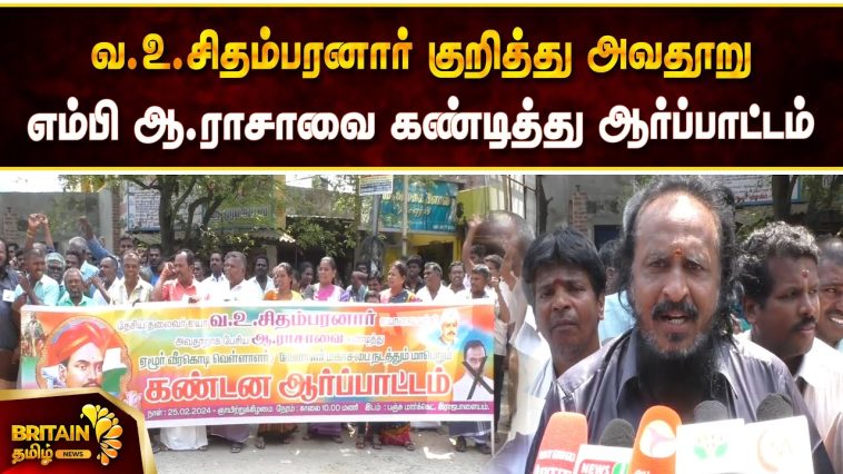 வ.உ. சிதம்பரனார் குறித்து அவதூறு பரப்பிய திமுக எம்பி ஆ ராசாவை கண்டித்து ஆர்ப்பாடம்