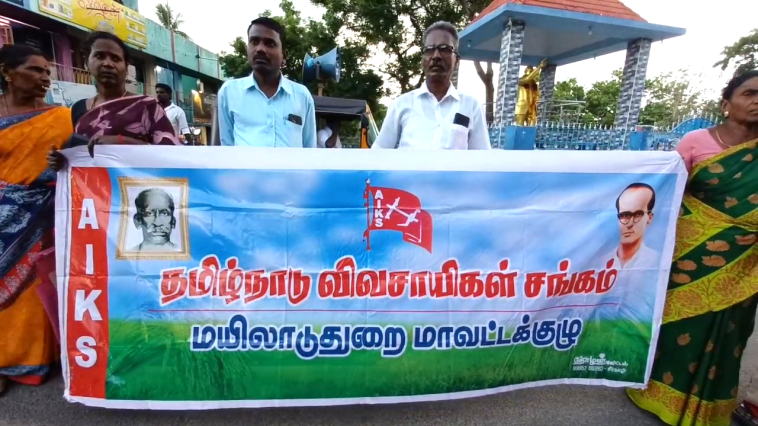மயிலாடுதுறை மாவட்டம் சீர்காழி புதிய பேருந்து நிலையம் அருகில் தமிழ்நாடு விவசாயிகள் சங்கம் சார்பில் மாவட்ட தலைவர் வீரராஜ் தலைமையில் நடைபெற்றது. மத்திய அரசின் உத்தரவு நகலை எரித்து கண்டன முழக்கங்கள் எழுப்பினர்.