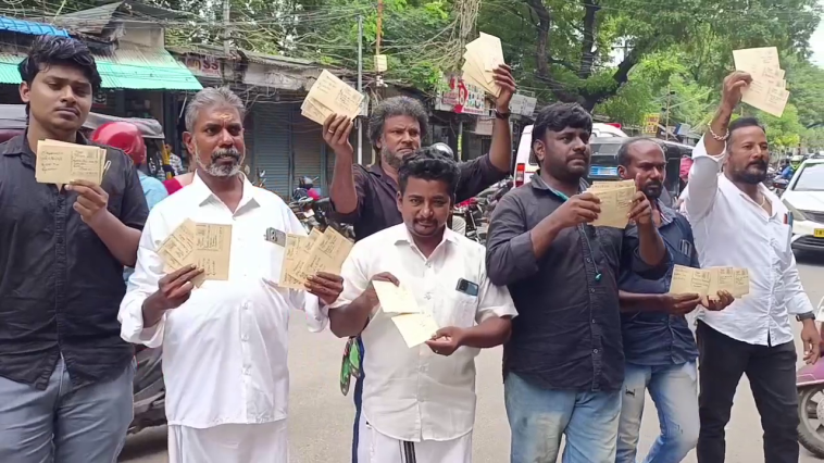 மதுரையில் தமிழக ஆளுநருக்கு 1000 அஞ்சல் அனுப்பி நூதன போராட்டம்