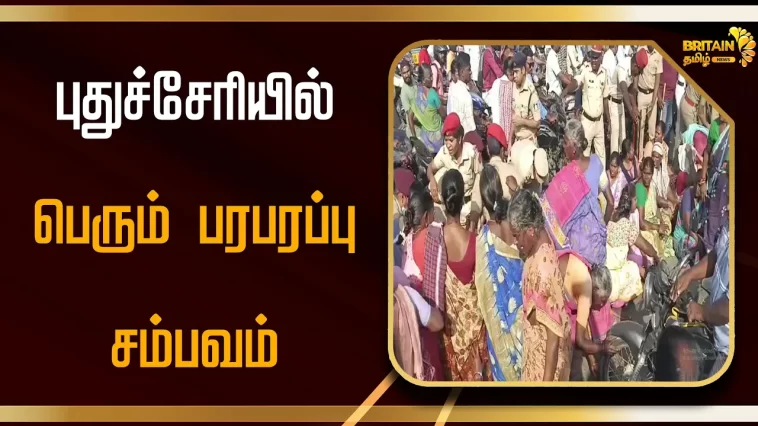 புதுச்சேரியில் கிராம மக்கள் நடத்திய போராட்டம்