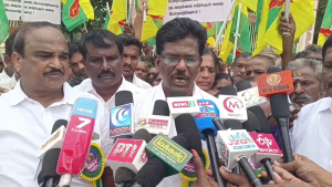 இதற்கு எதிர்ப்பு தெரிவித்து மக்கள் சமூகநீதி பேரவை சமூக நல்லிணக்க பாதுகாப்பு குழு சார்பில் தேனி மாவட்ட ஆட்சியர் அலுவலகம் முன்பு கண்டன ஆர்ப்பாட்டத்தில் ஈடுபட்டனர்.