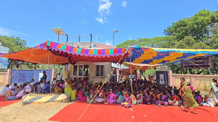 மறுவாழ்வு மீள்குடியமர்வு இழப்பீட்டு தொகையான 5 லட்ச ரூபாயை உடனே வழங்ககோரி பனங்குடி, நரிமணம், கோபுராஜபுரம் உள்ளிட்ட கிராமங்களைச் சேர்ந்த பொது மக்கள் கோஷங்களை எழுப்பினர்.