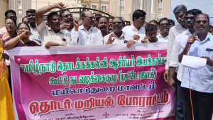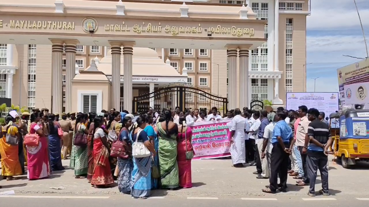 மயிலாடுதுறை மாவட்ட ஆட்சியர் அலுவலகம் எதிரே மறியல் போராட்டம்