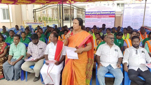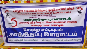 தமிழ்நாடு ஊரக வளர்ச்சி துறை அலுவலர்களுக்கு கொரோனா காலகட்டத்தில் ஊக்கத்தொகை வழங்கப்படும் என தமிழக அரசு அறிவித்திருந்தது ஆனால் இதுவரை வழங்கப்படவில்லை.ஊராட்சி செயலர் உள்ளிட்ட மாவட்ட வட்டார ஒருங்கிணைப்பாளர்களுக்கு நிரந்தர பணியிடத்தில் பணி நியமனம் செய்யப்பட வேண்டும், ஊராட்சியில் பணிபுரியும் அனைத்து தற்காலிக பணியாளர்களுக்கும் குடும்ப நல நிதி வழங்கப்பட வேண்டும் என்பன உள்ளிட்ட கோரிக்கைகளை வலியுறுத்தி தமிழ்நாடு ஊரக வளர்ச்சி துறை தொழிலாளர்கள் சங்கம் சார்பில் மாவட்ட ஆட்சியர் அலுவலகத்தில் சோற்று சட்டியுடன் காத்திருப்பு போராட்டம் நடைபெற்றது சங்கத்தின் மாவட்ட செயலாளர் தமிழ்மலர் தலைமையில் நடைபெற்ற போராட்டத்தில் மாவட்ட தலைவர் மாதவன்ராஜ் ஏஐடியுசி மாவட்ட தலைவர் ராஜ்மோகன் மாவட்ட பொதுச் செயலாளர் ராமன் மற்றும் ஏராளமான தூய்மை பணியாளர்கள் OHD ஆப்ரேட்டர்கள் மற்றும் திரளான தொழிலாளர்கள் பங்கேற்றனர்.