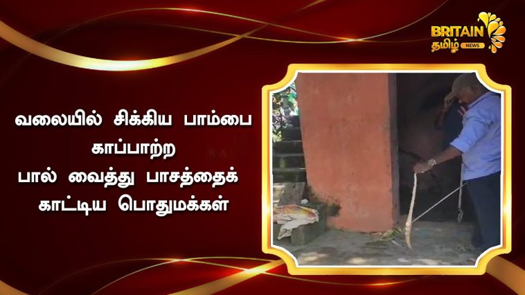 வலையில் சிக்கிய பாம்பிற்கு உயிர் ஆபத்து வந்துவிடுமோ என்று அஞ்சிய பொதுமக்கள் பாம்புக்கு பால் வைத்து பாசத்தைக் காட்டிய வீடியோ தற்போது வைரலாகி வருகிறது.