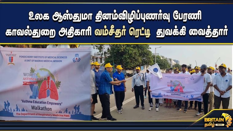 இன்று உலக ஆஸ்துமா தினம். இதனையொட்டி புதுச்சேரியில் பிம்ஸ் மருத்துவமனை சார்பில் மருத்துவர்கள், மருத்துவ மாணவர்கள் பங்கேற்ற விழிப்புணர்வு பேரணி கடற்கரை சாலையில் துவங்கி டுப்லக் சிலை சோனா பாளையம் ரயில் நிலையம் வழியாக பொட்டானிக்கல் கார்டனை சென்றடைந்தது.