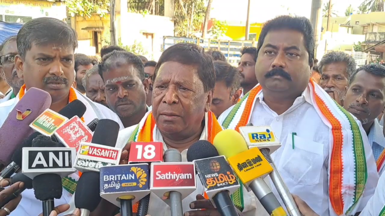 அனைத்து அமைச்சர்களும் பதவி விலகும் வரை காங்கிரஸ் கட்சி போராடும் என முன்னாள் முதல்வர் நாராயணசாமி தெரிவித்தார்.