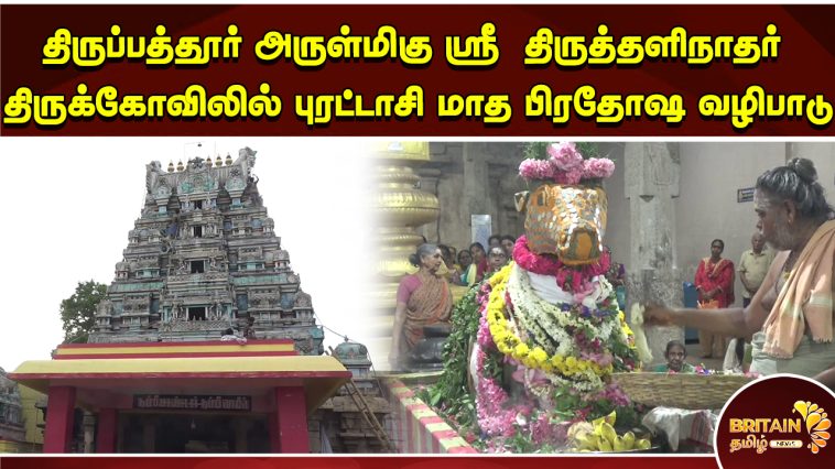 திருப்பத்தூர் அருள்மிகு ஶ்ரீ திருத்தளிநாதர் திருக்கோவிலில் புரட்டாசி மாத பிரதோஷ வழிபாடு நந்தியம்பெருமானுக்கு நடைபெற்ற சிறப்பு அபிஷேக ஆராதனை
