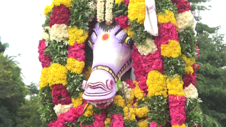 பின்னர் பக்தர்கள களிமண்ணால் செய்யப்பட்ட குதிரை பொம்மைகளுக்கு மலர் மாலைகள் வஸ்திரங்கள் அணிவித்து வழிபாடு செய்தனர்.